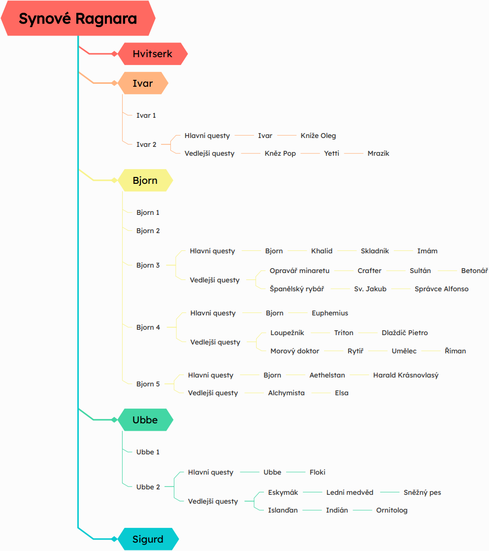 Mytologická linka začíná úkolem u Proroka, kterého nalezneš v questovém domě. Postupně tě čeká cesta do Asgardu, setkání s Thorem, Odinem nebo třeba Lokim. Budeš čelit zkouškám bohů, objevovat legendy o Fenrirovi, Yggdrasilu, Hel... A v závěru tě čeká epické finále - Ragnarök.